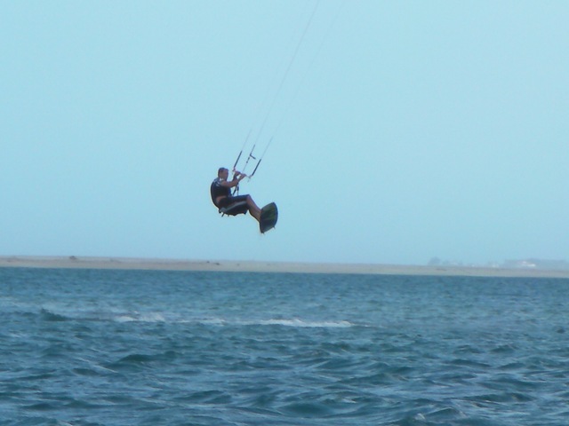 Possible all year round, larger kites for the fairer days December through January,3 out of 7 days around 15knts in the afternoons, April can go smaller with winds around 20 to 25knts. Prime time mid Aug to mid Nov on average 7 out of 10 days 20 to 30knts. Lagoon is perfect for beginners and advanced with the surf in the bay cross onshore or cross offshore.